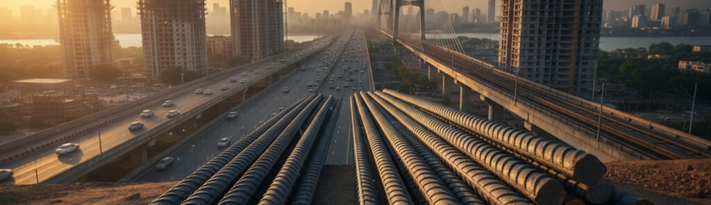 Infrastructure development requires massive volumes of structural materials. From bridges and tunnels to airports and elevated corridors, reinforced concrete forms the backbone of these projects. Because concrete alone cannot withstand tensile stress, reinforcement steel becomes essential.